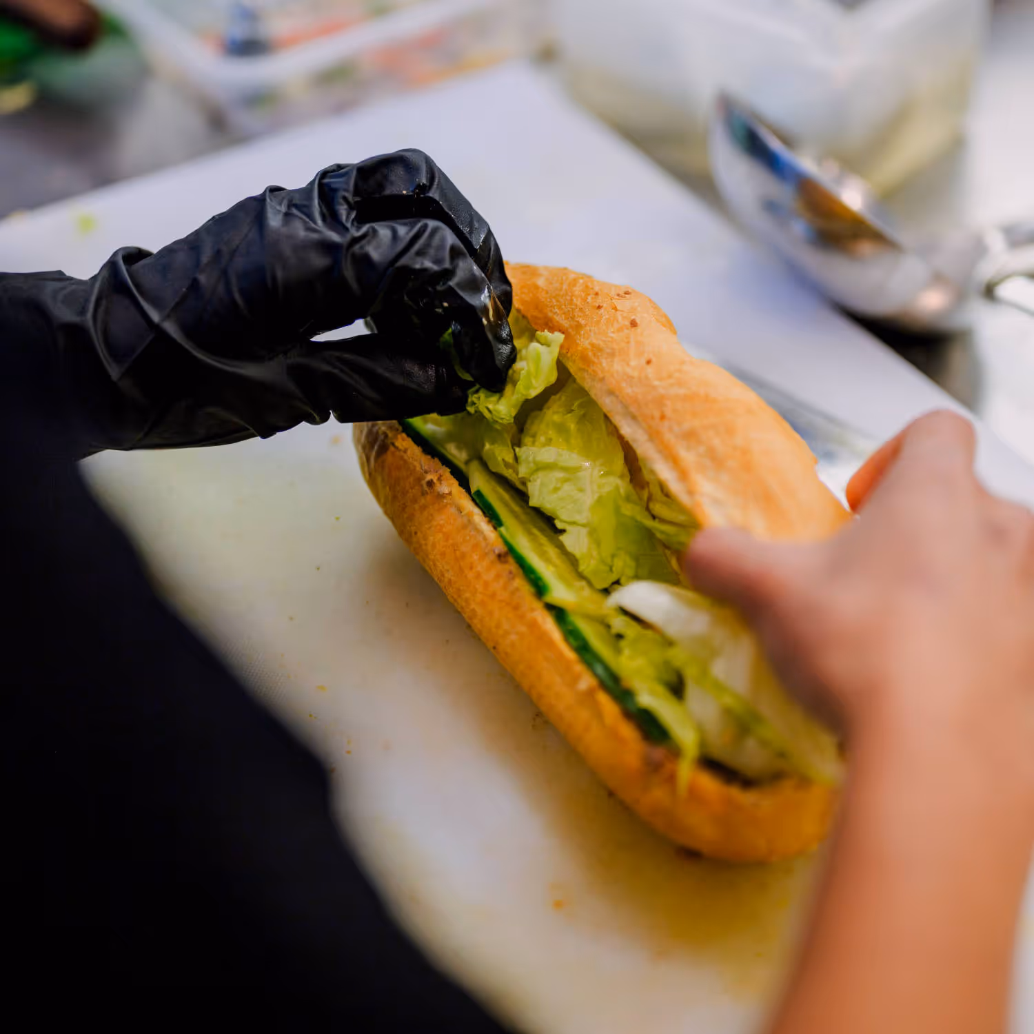 Banh Mi Factory is all about quick service without cutting corners on authenticity. Our shop is designed for a fast, easy, grab-and-go experience - no fuss, just fresh food and big flavours. Think street food energy with the convenience of your favourite takeaway spot.