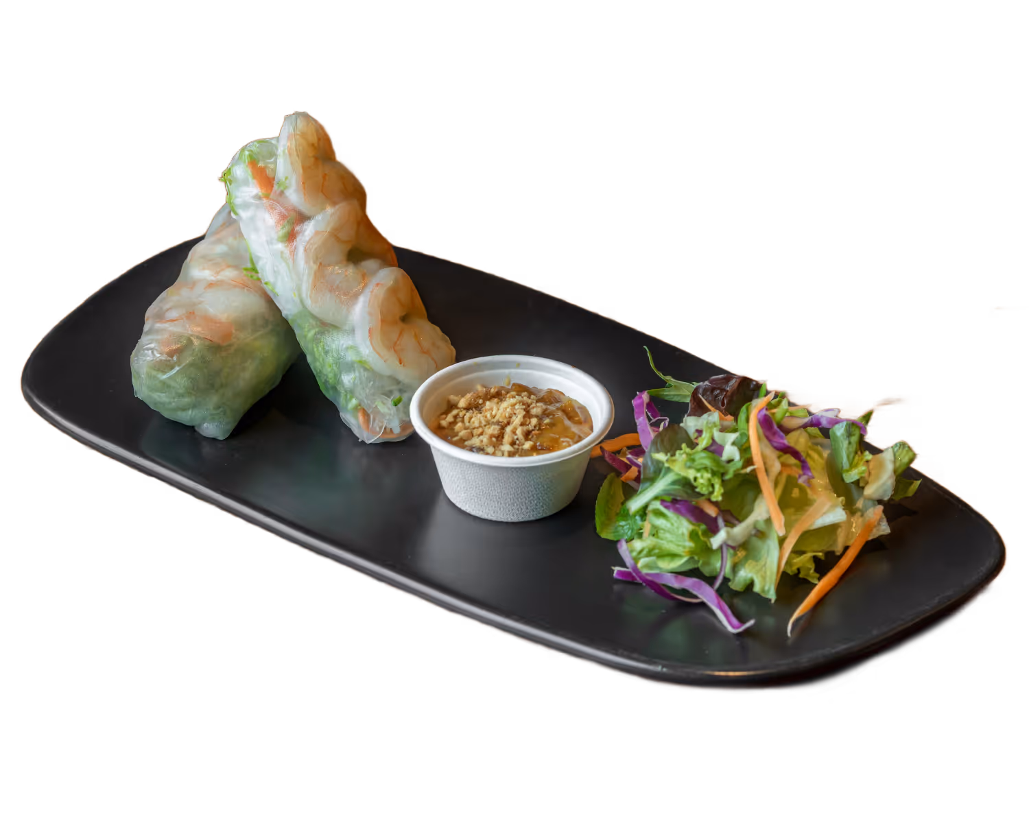 Noodles with fresh lettuce, pickled carrots, fresh mint, cucumber, crispy shallots with our homemade dressing.
